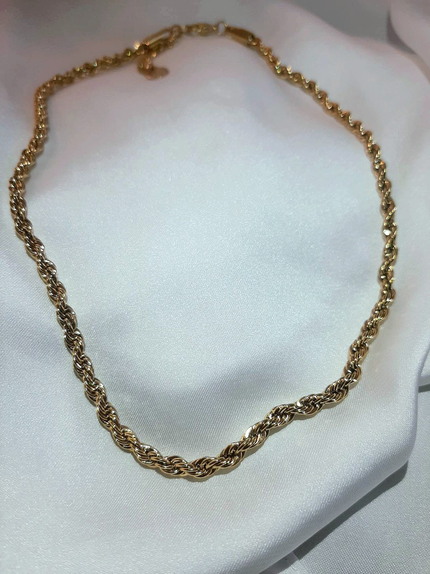 Collana in acciaio inossidabile color oro, maglia ad intreccio.