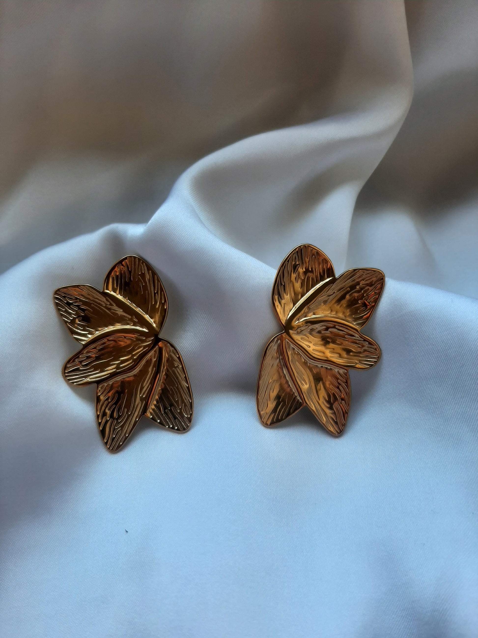 Orecchini in acciao inossidabile color oro, a forma di foglia.