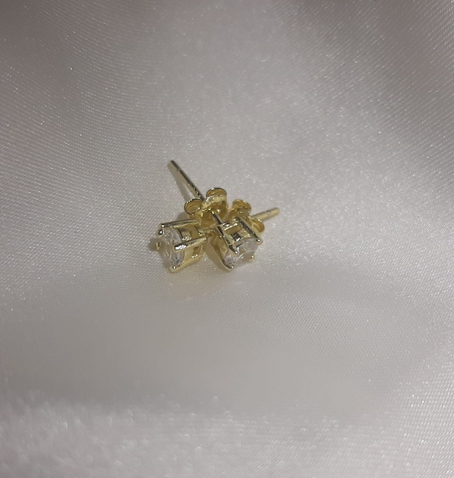 Orecchini punto luce in argento color oro, con zircone color bianco.